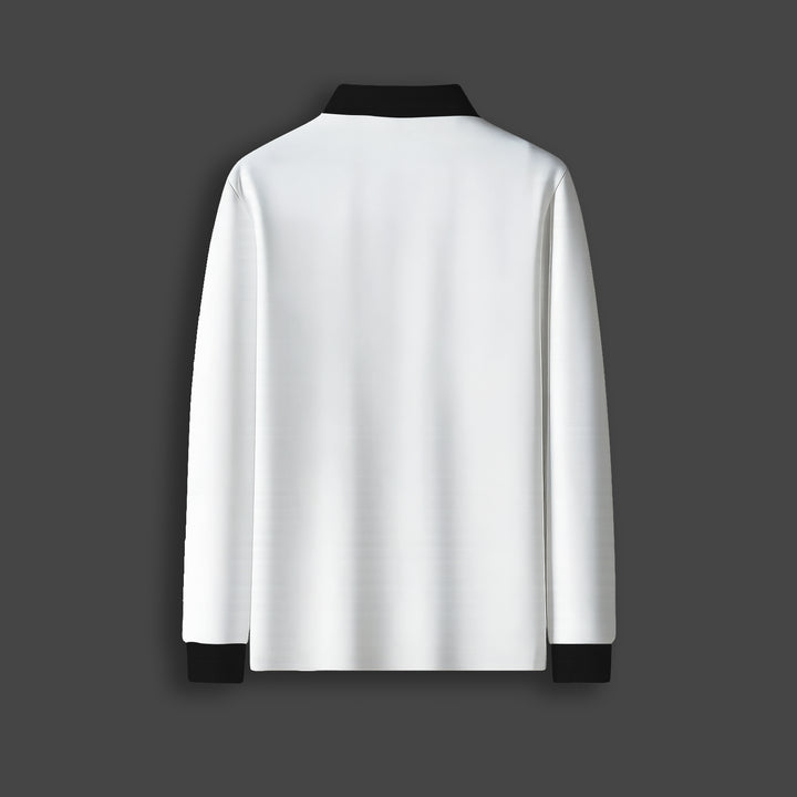 The WHITE SLEEVE POLO NECK T-SHIRT from Juxar stands out for its unique mix of style and comfort. This cotton polo t shirt features a soft pale turquoise color that adds a fresh look to any wardrobe. The black collar and sleeve accents create a classic contrast. This design makes the shirt appropriate for both relaxed and semi-formal settings.