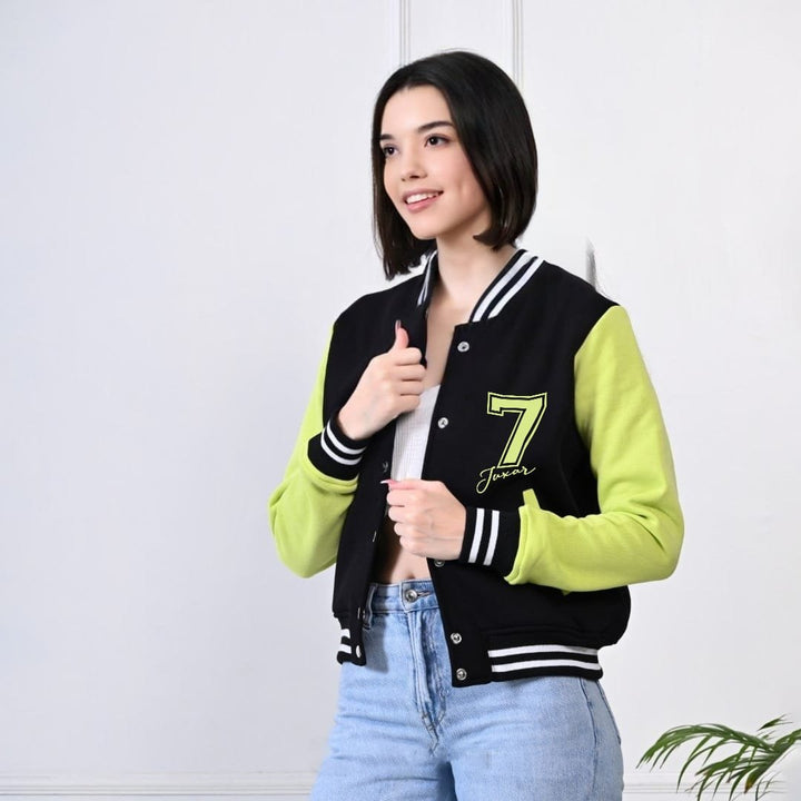 BLACK & NEON VARSITY JACKET by Juxar intended for comfort & athletic purposes for Women.