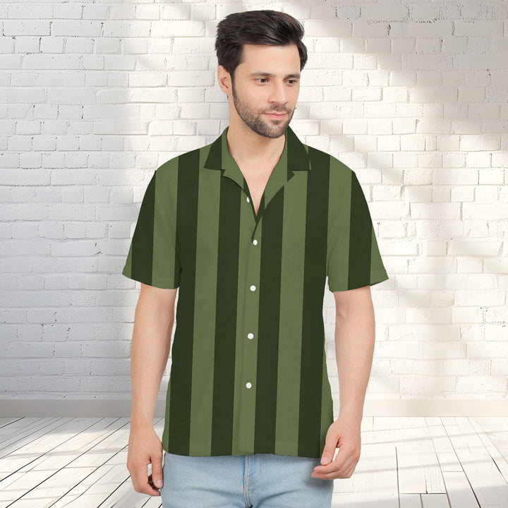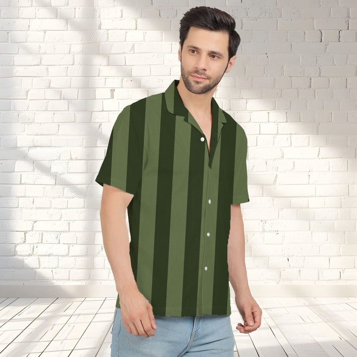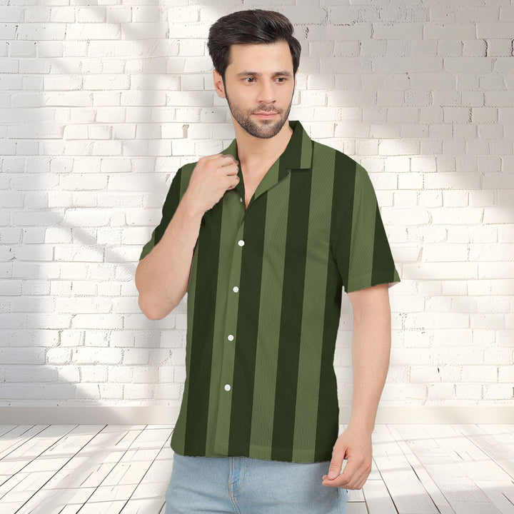 BOTTLE GREEN STRIPE CORDUROY PRINTED SHIRT