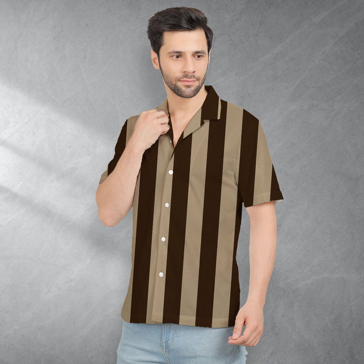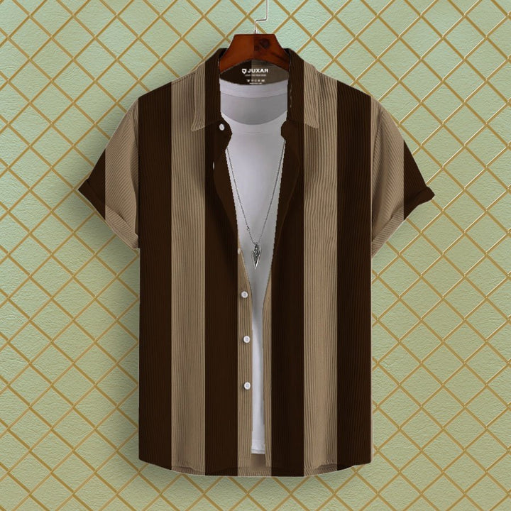 BROWN STRIPES CORDUROY PRINTED SHIRT