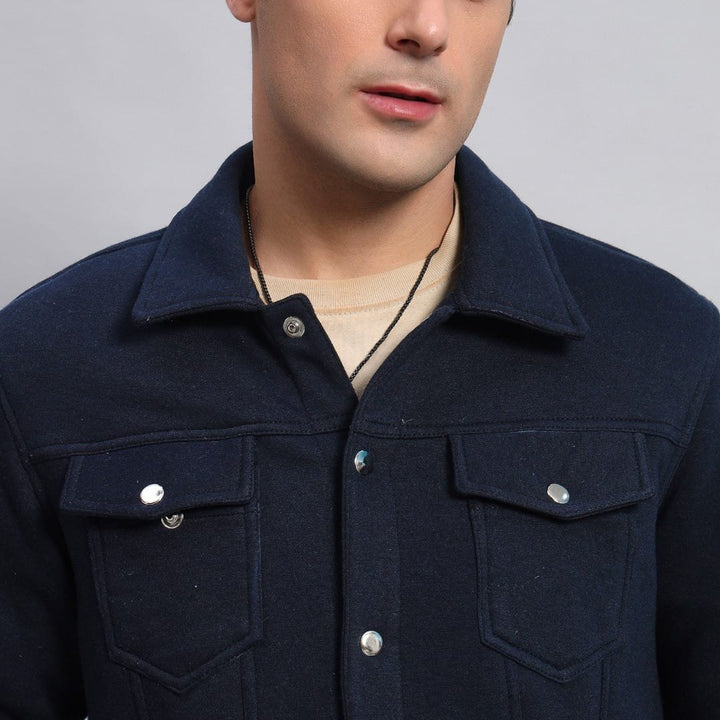Navy Blue Trucker Jacket for Men by Juxar in best quality intended for comfort & athletic purposes for Men.