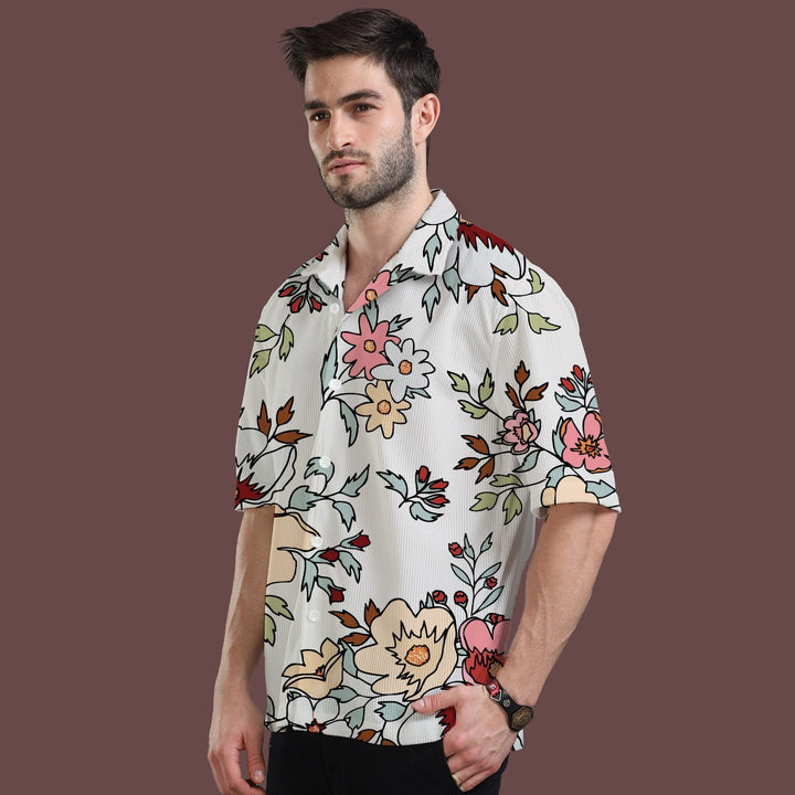 PLANTS FLOWER CORDUROY OVERSIZE PRINTED SHIRT By Juxar. Flaunt your style with the awesome collection of Stylish white shirt corduroy shirt from Juxar.
