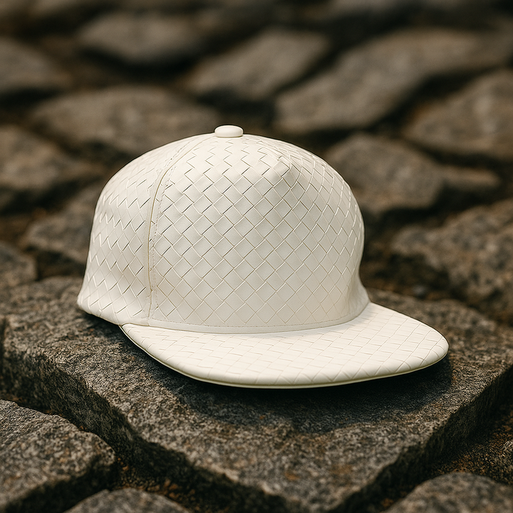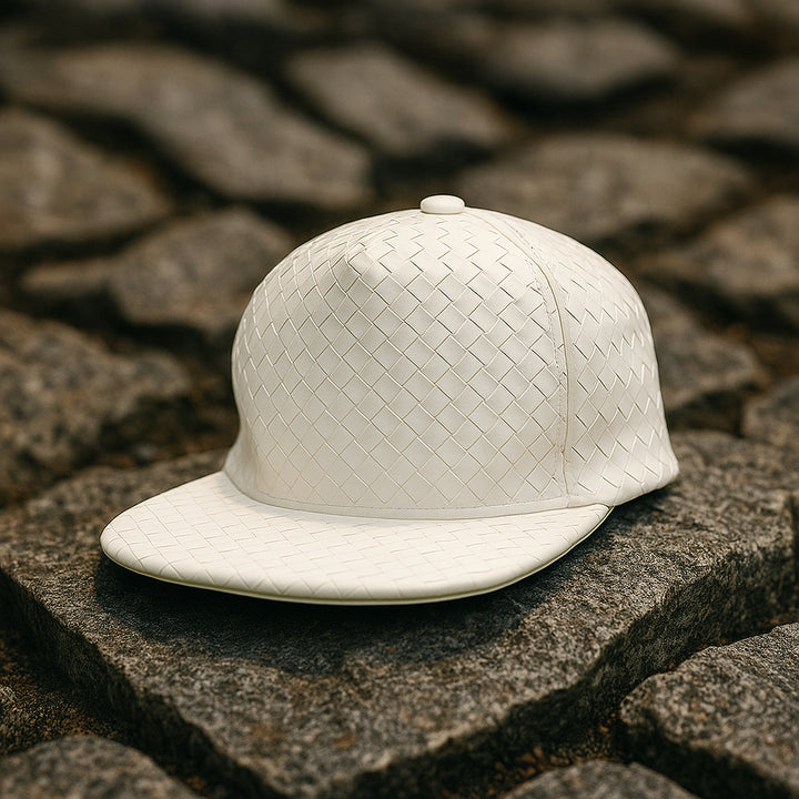 QUILTED LEATHERETTE WHITE SNAPBACK CAP