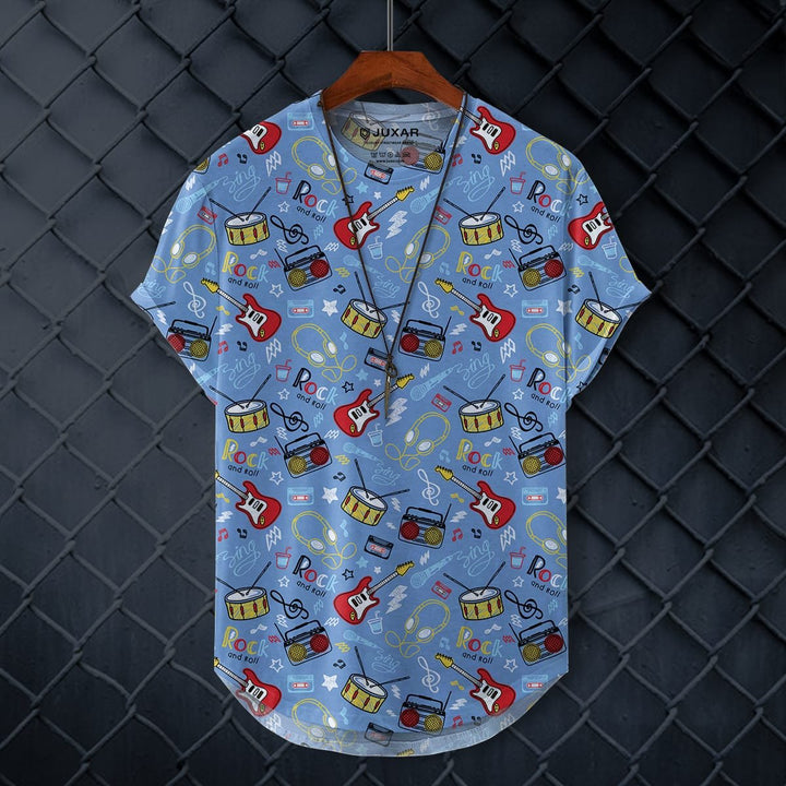 ROCK N ROLL Printed Longline T-Shirt By Juxar. Flaunt your style with the awesome collection of Stylish T-shirts from Juxar.