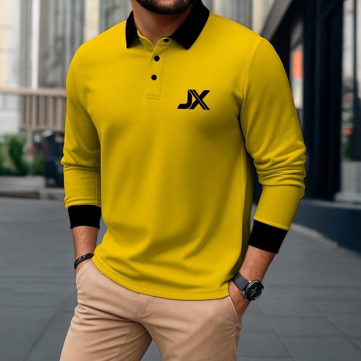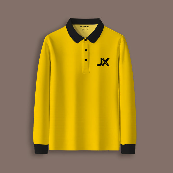 The YELLOW SLEEVE POLO NECK T-SHIRT from Juxar stands out for its unique mix of style and comfort. This cotton polo t shirt features a soft pale turquoise color that adds a fresh look to any wardrobe. The black collar and sleeve accents create a classic contrast. This design makes the shirt appropriate for both relaxed and semi-formal settings.